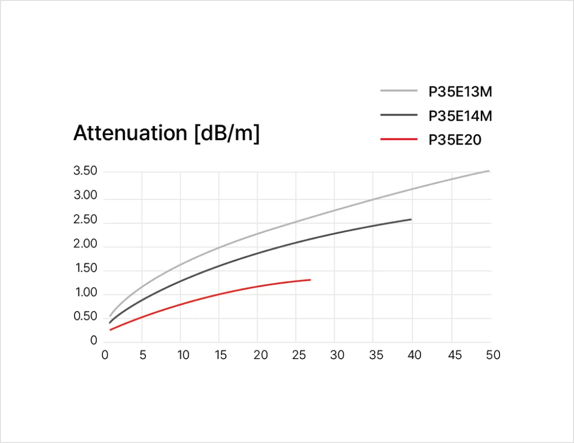 | P35E20 | 26.5GHz | -1.4dB / meter | <3° | ø9mm | Download |